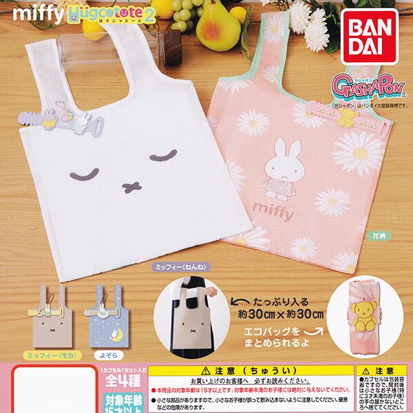 ミッフィー miffy はぐこっとーと2 Hugcotote エコバッグ キャラクター グッズ かわいい ガチャ ガシャポン バンダイ(全4種フルコンプセット+DP台紙おまけ付き)
