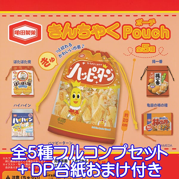 亀田製菓 きんちゃくポーチ 巾着 Pouch 小袋 お菓子 キャラクター デザイン グッズ ガチャガチャ ウルトラニュープランニング(全5種フルコンプセット+DP台紙おまけ付き)