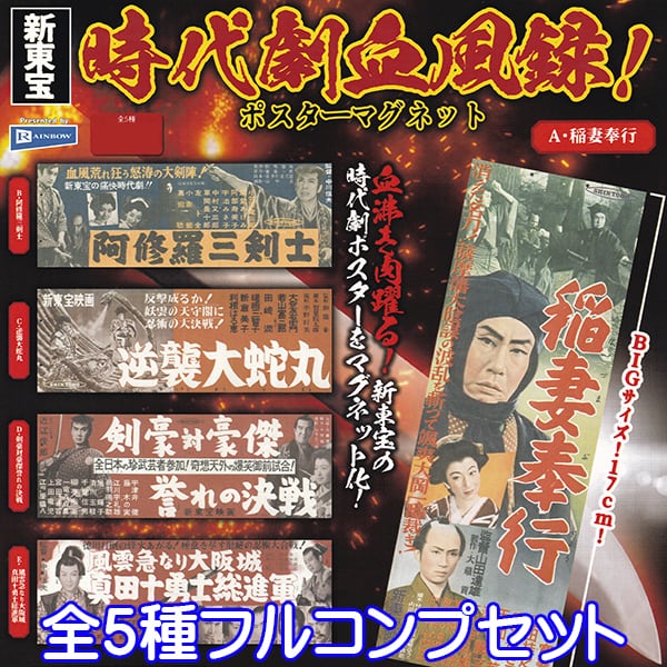 新東宝 時代劇血風録! ポスターマグネット レトロ 懐かしい グッズ 磁石 ガチャガチャ レインボー(全5種フルコンプセット) | お宝市場BASE店 【フィギュア・ガチャガチャ・ガチャポン・食玩・プライズ・アニメ・グッズ・模型・ミニチュア】