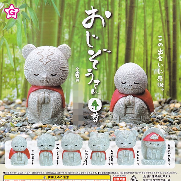 おじぞうさん 4尊 石像 動物 モチーフ かわいい お祈り グッズ フィギュア お地蔵さん ガチャガチャ エール(全6種フルコンプセット+DP台紙おまけ付き)