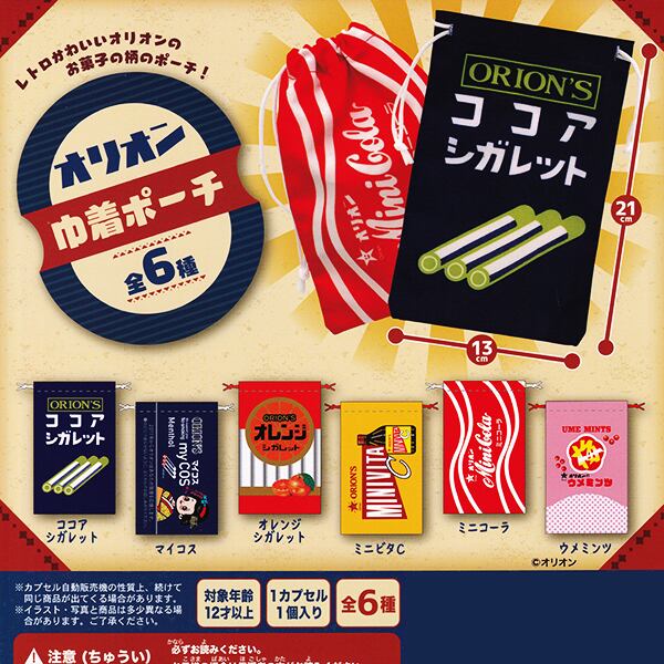 オリオン 巾着ポーチ 駄菓子 デザイン 柄 レトロ かわいい グッズ ガチャガチャ ウルトラニュープランニング(人気の4種セット)