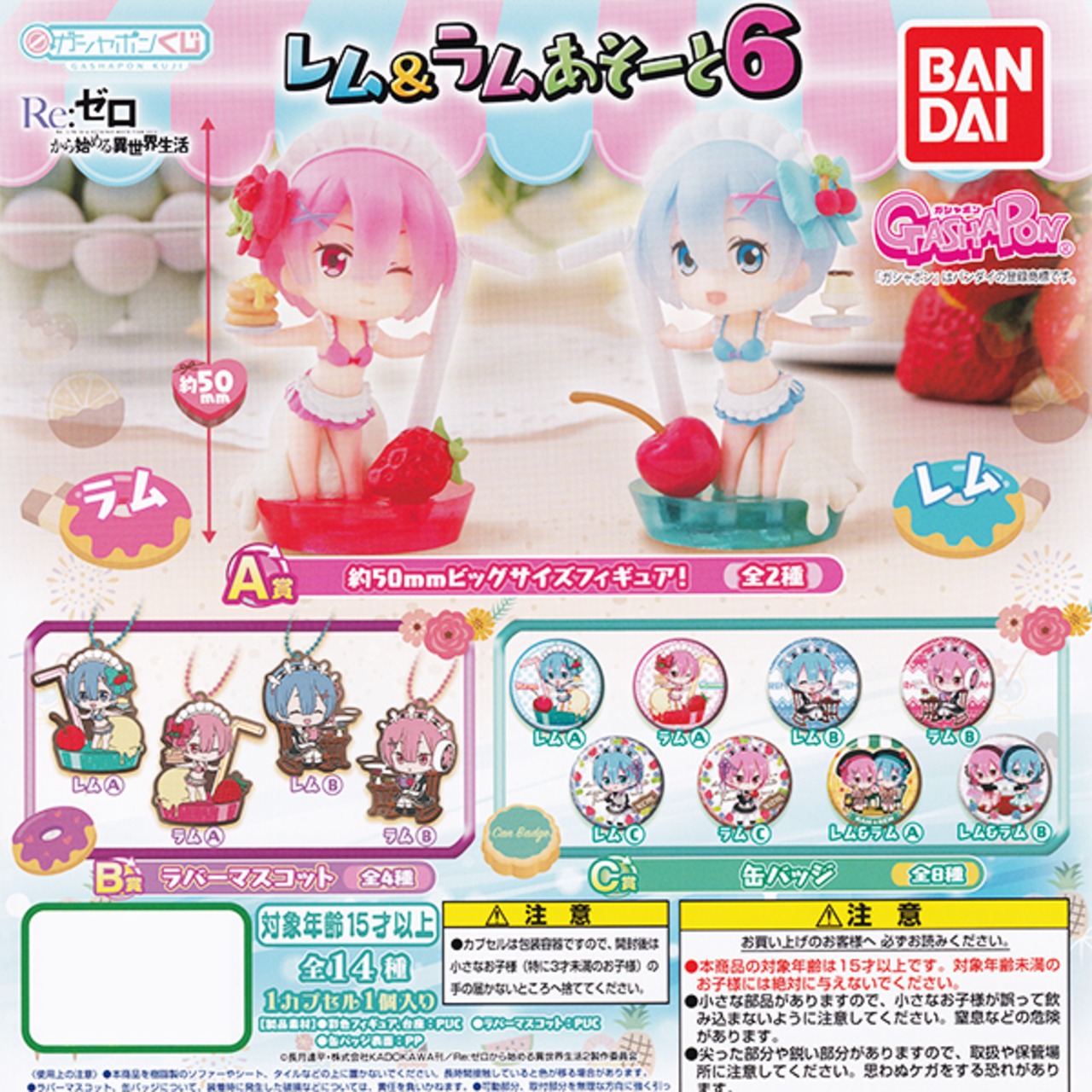 ガシャポンくじ Re:ゼロから始める異世界生活 レム&ラムあそーと6 リゼロ キャラクター グッズ フィギュア ガチャ ガシャポン バンダイ(全14種フルコンプセット+DP台紙おまけ付き)
