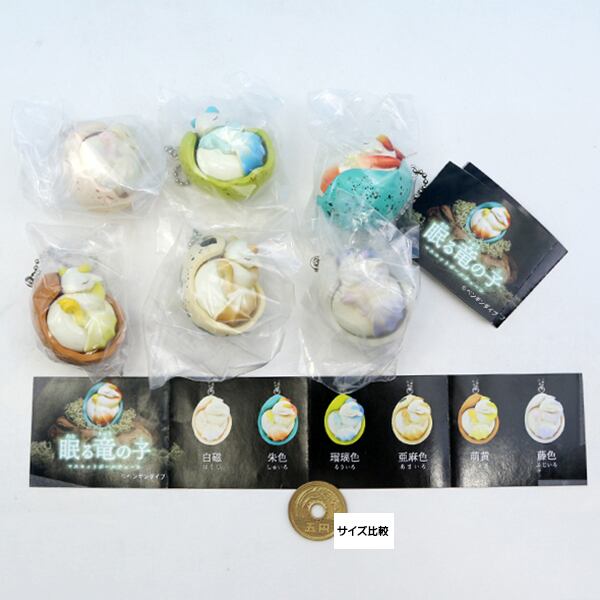 眠る竜の子 マスコットボールチェーン 卵 寝姿 リアルな竜の卵 ペンギンダイブ フィギュア ガチャガチャ Qualia(全6種フルコンプセット+DP台紙おまけ付き)