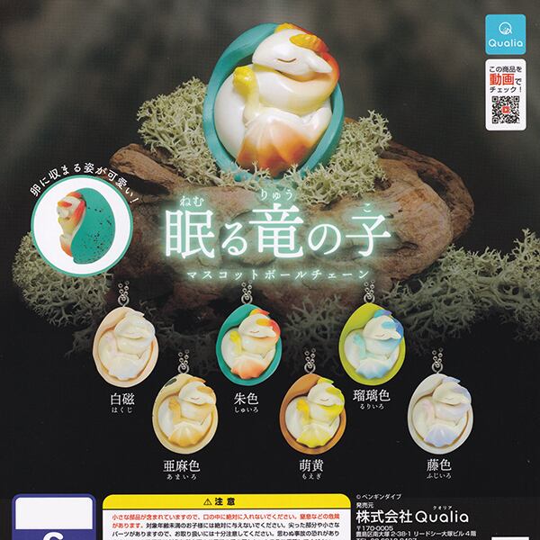 眠る竜の子 マスコットボールチェーン 卵 寝姿 リアルな竜の卵 ペンギンダイブ フィギュア ガチャガチャ Qualia(全6種フルコンプセット)
