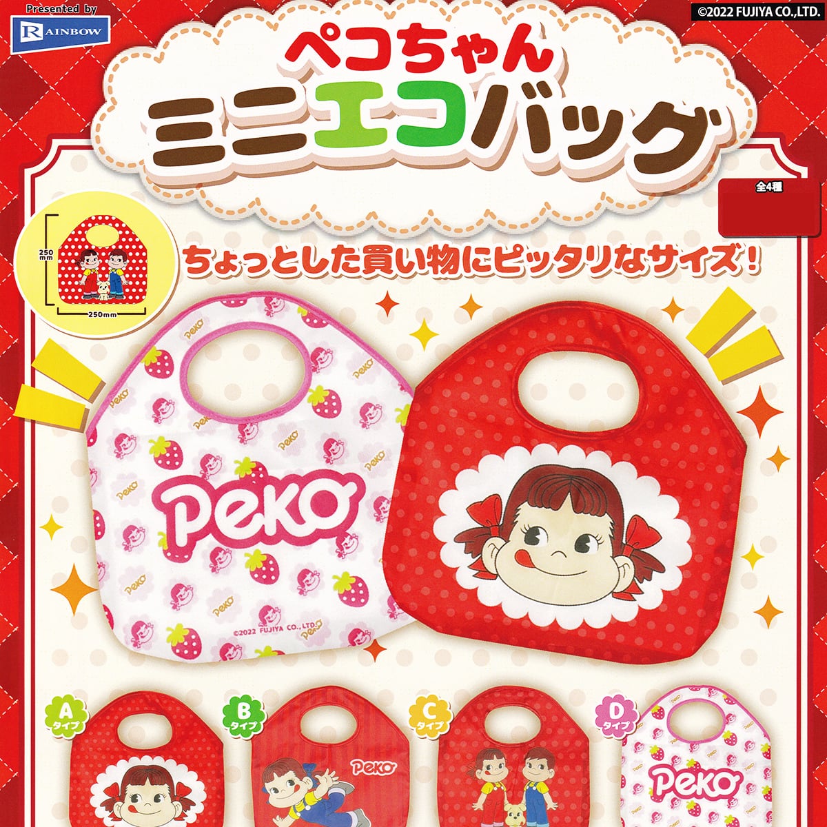 ペコちゃん ミニエコバッグ 不二家 キャラクター グッズ 手提げ袋 かわいい ガチャガチャ レインボー(全4種フルコンプセット+DP台紙おまけ付き)