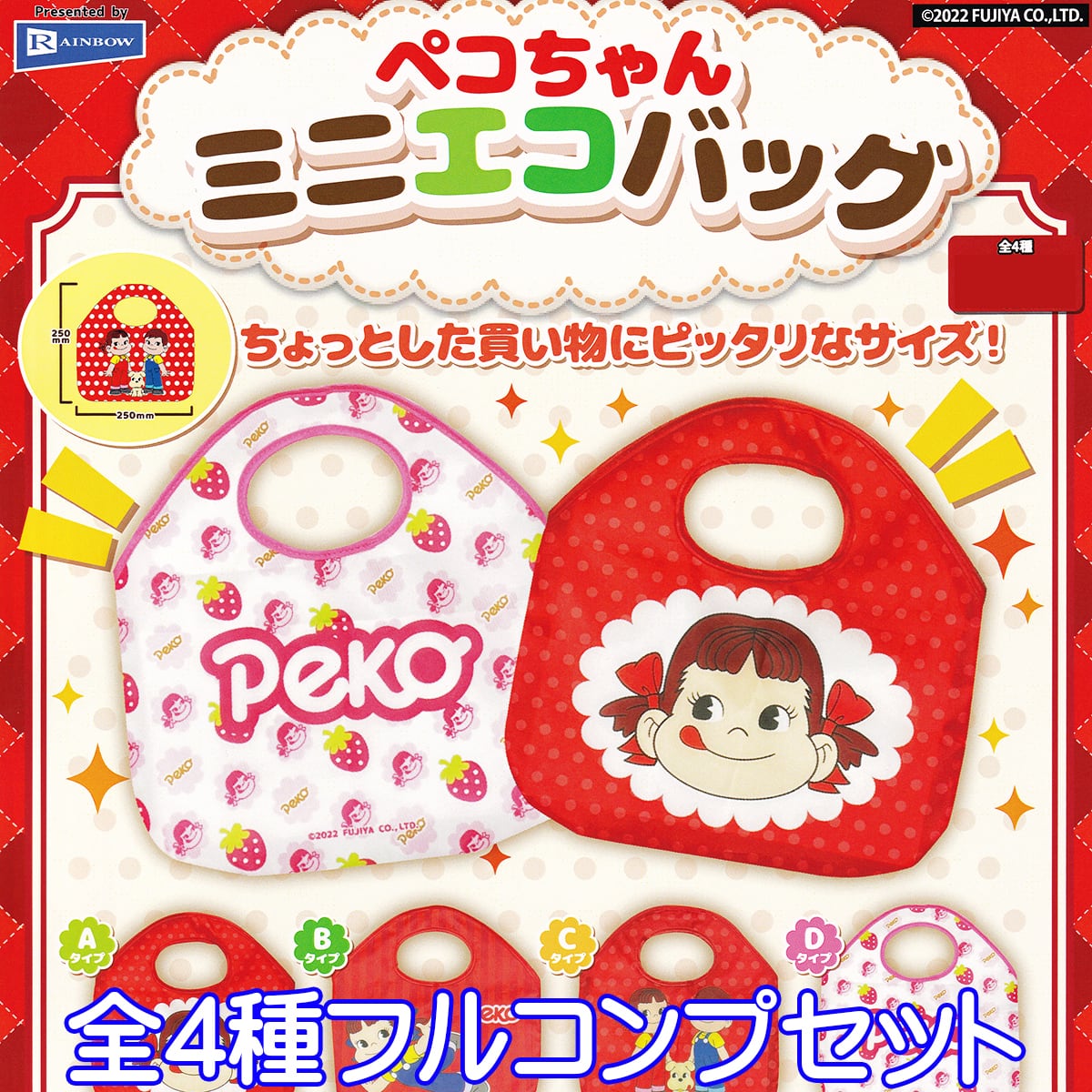 ペコちゃん ミニエコバッグ 不二家 キャラクター グッズ 手提げ袋 かわいい ガチャガチャ レインボー(全4種フルコンプセット)