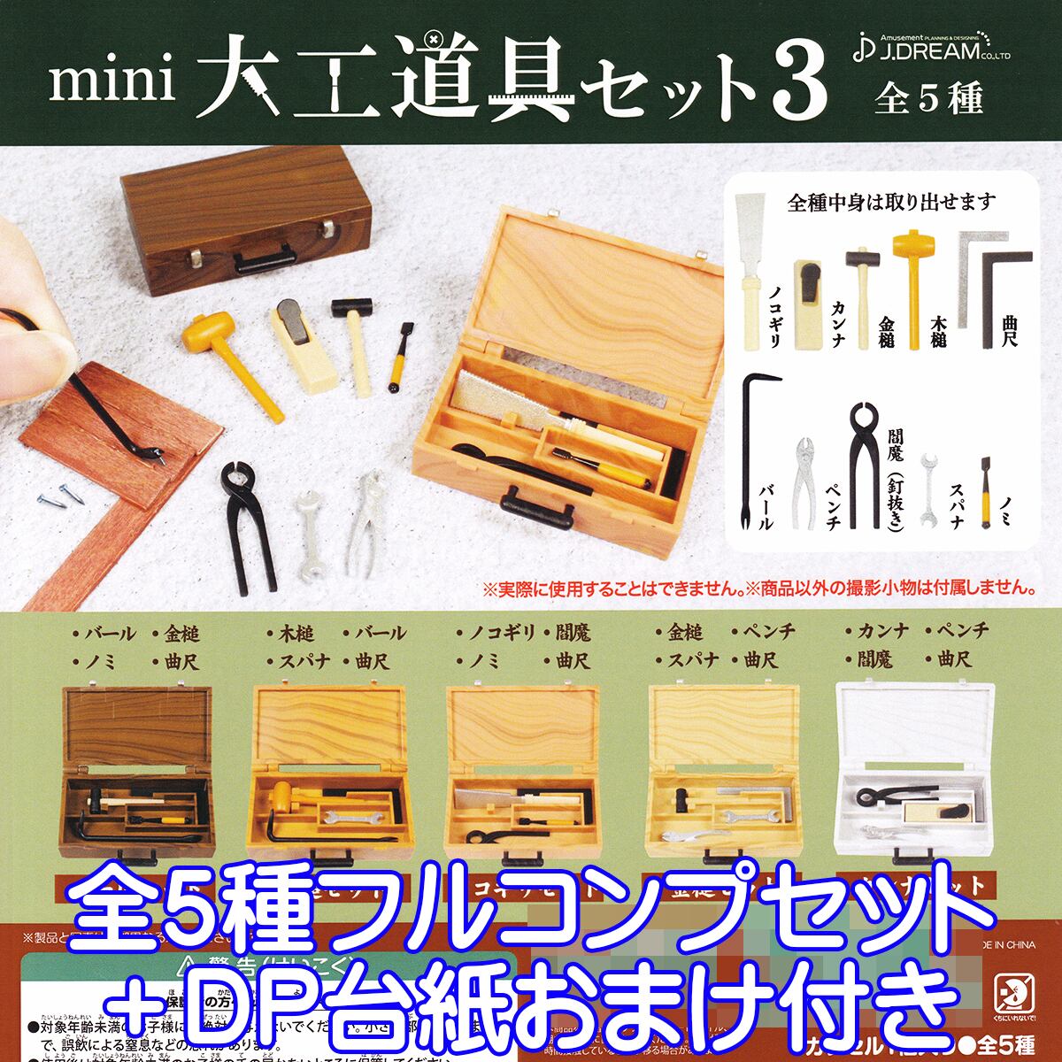 mini 大工道具セット3 ミニチュア グッズ 道具箱 一式 便利 フィギュア ガチャガチャ J.ドリーム(全5種フルコンプセット+DP台紙おまけ付き)