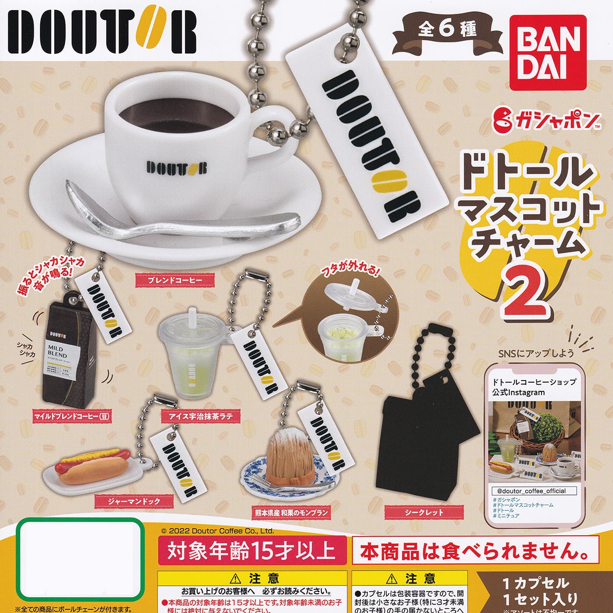 ドトールマスコットチャーム2 DOUTOR カフェ ショップ メニュー ミニチュア グッズ フィギュア ガチャガチャ ガシャポン バンダイ(シークレット付き全6種フルコンプセット+DP台紙おまけ付き)