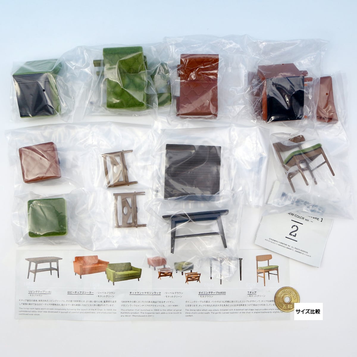 カリモク60 ミニチュアファニチャー2 NEW COLOR ver. チェア テーブル 家具 グッズ オモ写 おもちゃ インテリア フィギュア ガチャガチャ ケンエレファント(全7種フルコンプセット)