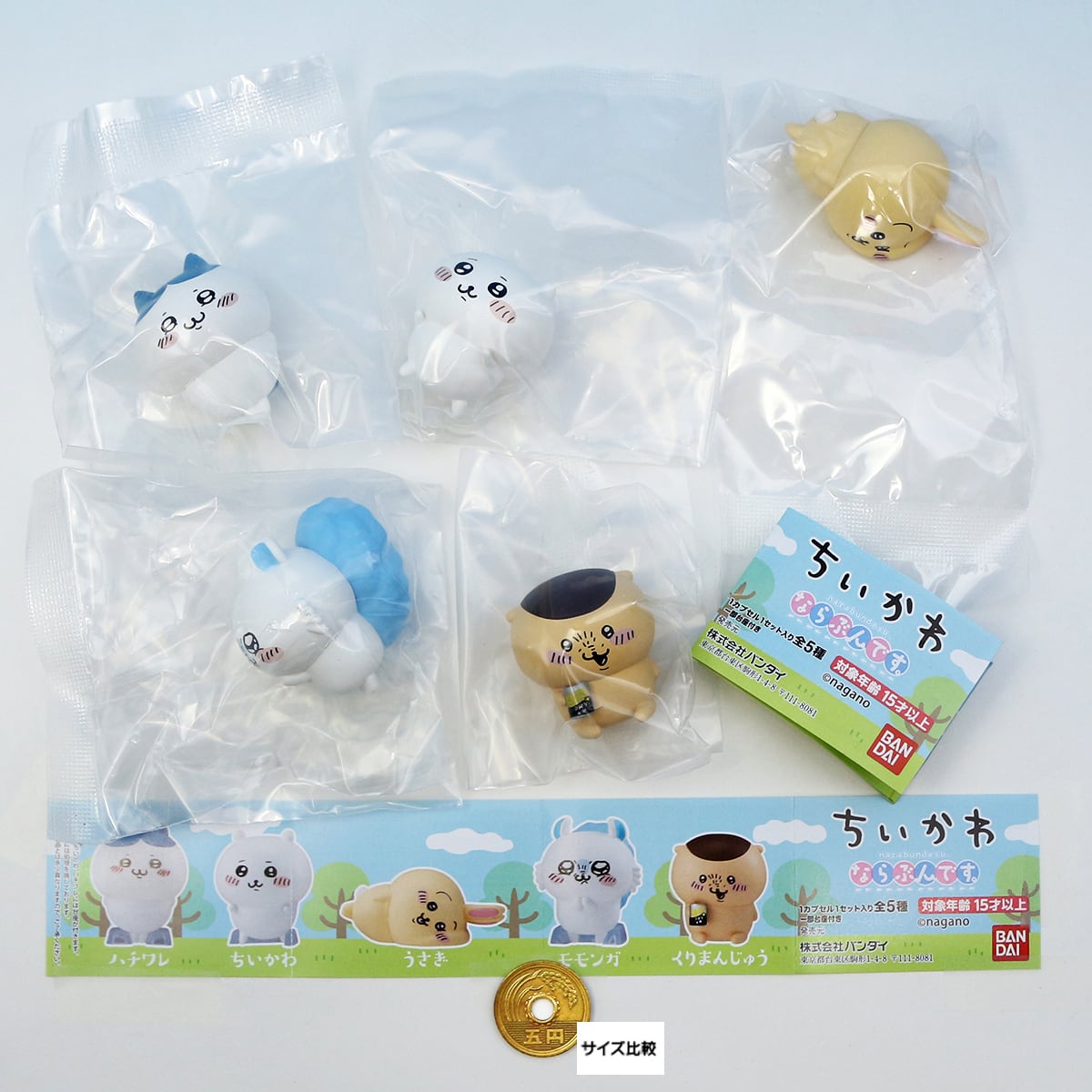 ちいかわ ならぶんです。 narabundesu. nagano かわいい キャラクター グッズ フィギュア ガチャ バンダイ(全5種フルコンプセット+DP台紙おまけ付き)