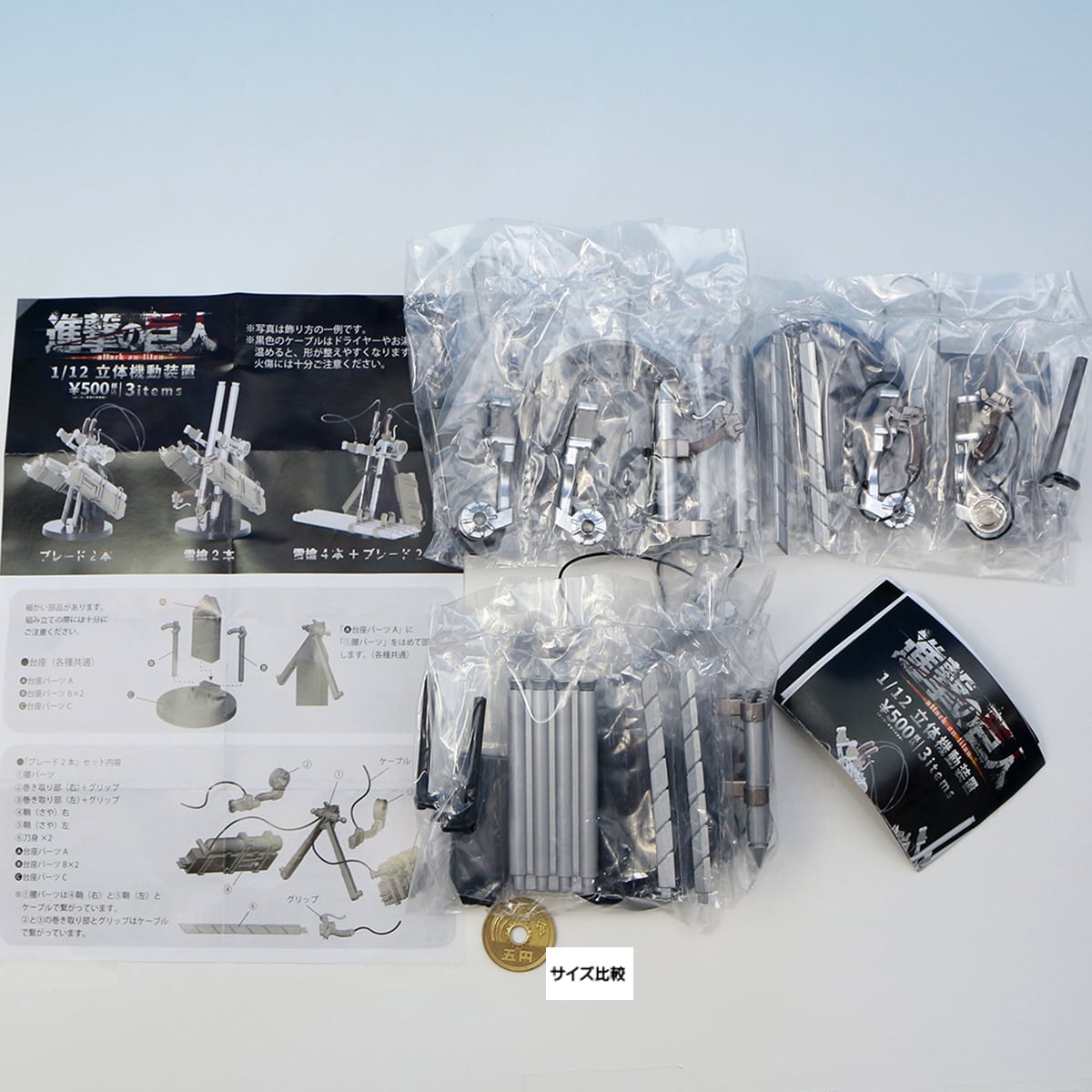進撃の巨人 1/12 立体機動装置 attack on titan 武器 装備 アニメ グッズ ミニチュア フィギュア 模型 おもちゃ ガチャガチャ SO-TA(全3種フルコンプセット+DP台紙おまけ付き)