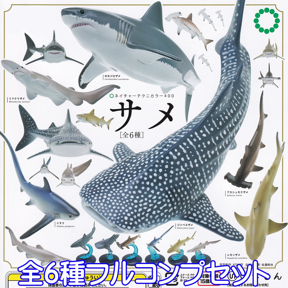 ネイチャーテクニカラー 400 サメ NATURE TECHNICOLOR 海の生き物 鮫 ミニチュア グッズ フィギュア 動物 模型 ガチャガチャ いきもん(全6種フルコンプセット)
