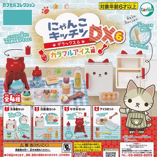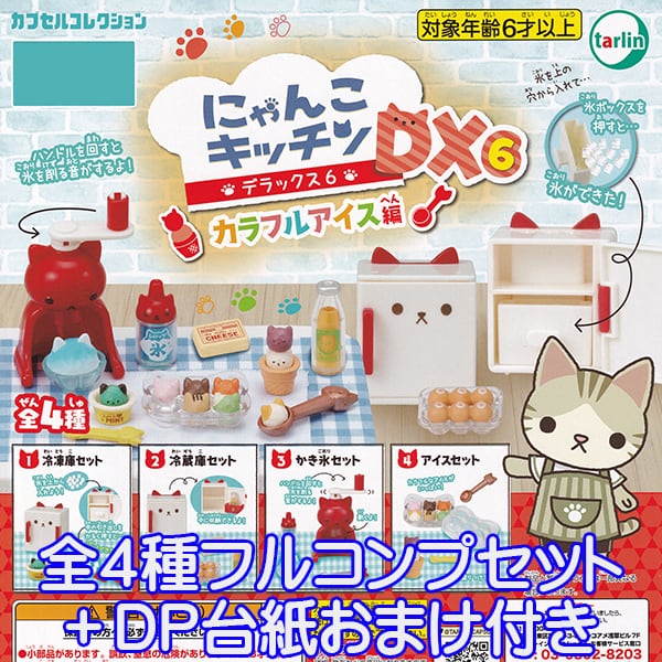 にゃんこキッチン DX6 カラフルアイス編 カプセルコレクション 台所 グッズ 猫 モチーフ ままごと ミニチュア ガチャガチャ ターリン・インターナショナル(全4種フルコンプセット+DP台紙おまけ付き)