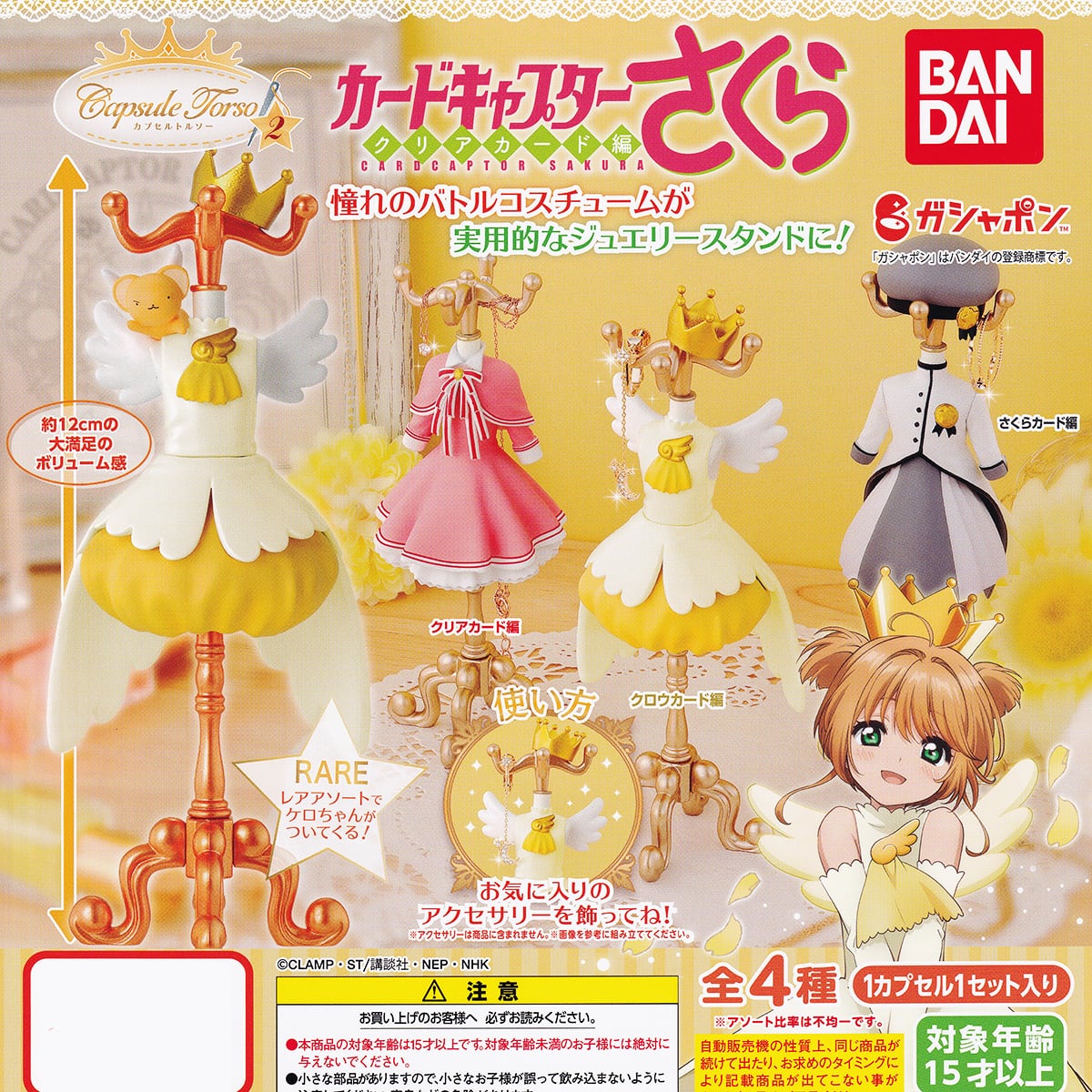 カプセルトルソー カードキャプターさくら クリアカード編2 Capsule Torso CARDCAPTOR SAKURA 変身 衣装 キャラクター グッズ フィギュア ガチャガチャ ガシャポン バンダイ(レアver.付き全4種フルコンプセット+DP台紙おまけ付き)