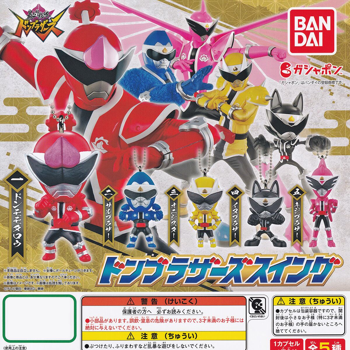 暴太郎戦隊ドンブラザーズ ドンブラザーズスイング 戦隊ヒーロー 特撮 キャラクター グッズ フィギュア ガチャガチャ ガシャポン バンダイ(全5種フルコンプセット+DP台紙おまけ付き)
