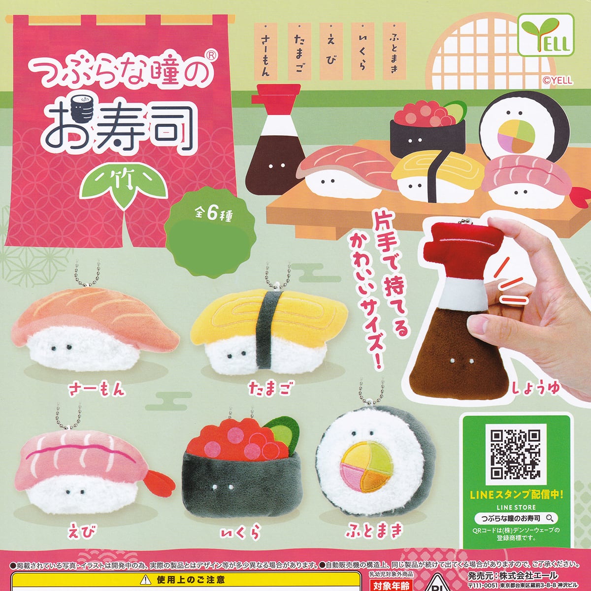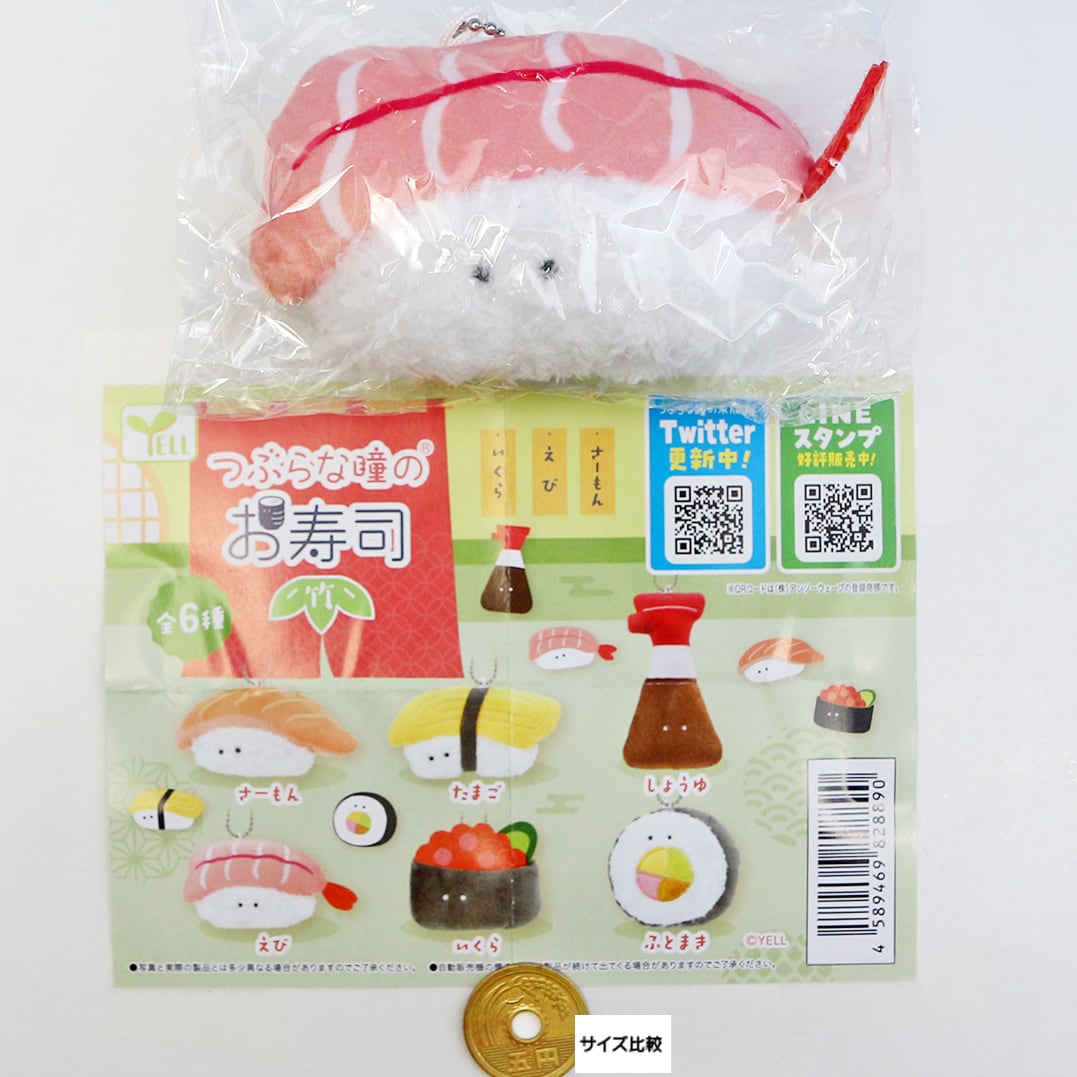 えび (つぶらな瞳のお寿司 竹 ぬいぐるみ ストラップ キーホルダー かわいい グッズ シリーズ おしゃれ カバンにつけたい ガチャガチャ エール)