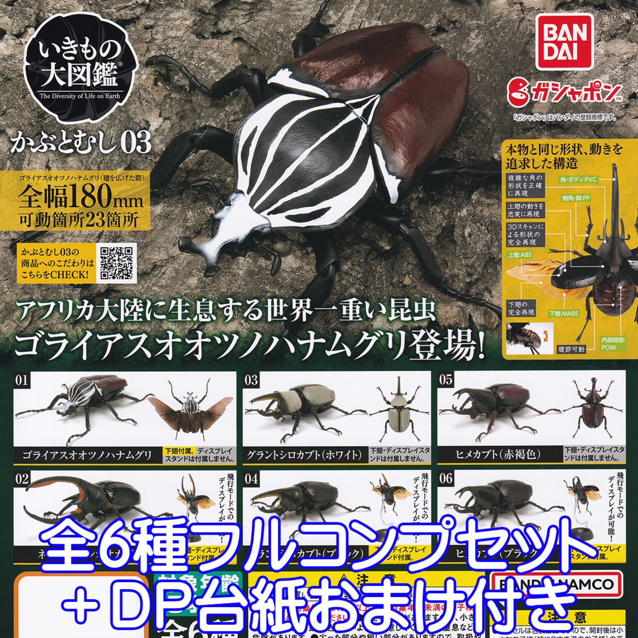 いきもの大図鑑 かぶとむし03 バンダイ 【全6種フルコンプセット+DP台紙おまけ付き】 昆虫 グッズ フィギュア ガチャガチャ ガシャポン 【即納 在庫品】【数量限定】