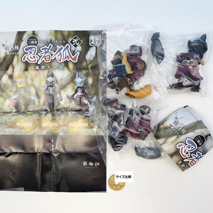 電脳大工 デフォルメ三頭身 忍者狐 弐 狐獣人×忍 SO-TA 【全3種フルコンプセット+DP台紙おまけ付き】 にんじゃぎつね グッズ フィギュア ガチャガチャ 【即納 在庫品】【数量限定】