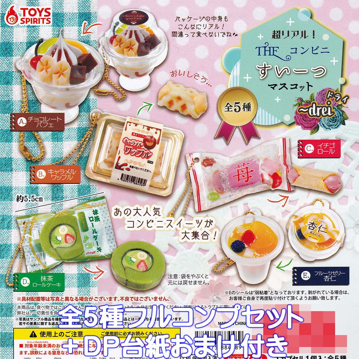 超リアル! THE コンビニすいーつマスコット drei トイズスピリッツ 【全5種フルコンプセット+DP台紙おまけ付き】 ドライ デザート ミニチュア グッズ フィギュア ガチャガチャ 【即納 在庫品】【数量限定】【フルコンプリート】 | お宝市場BASE店 【フィギュア・ガチャガチャ・ガチャポン・食玩・プライズ・アニメ・グッズ・模型・ミニチュア】