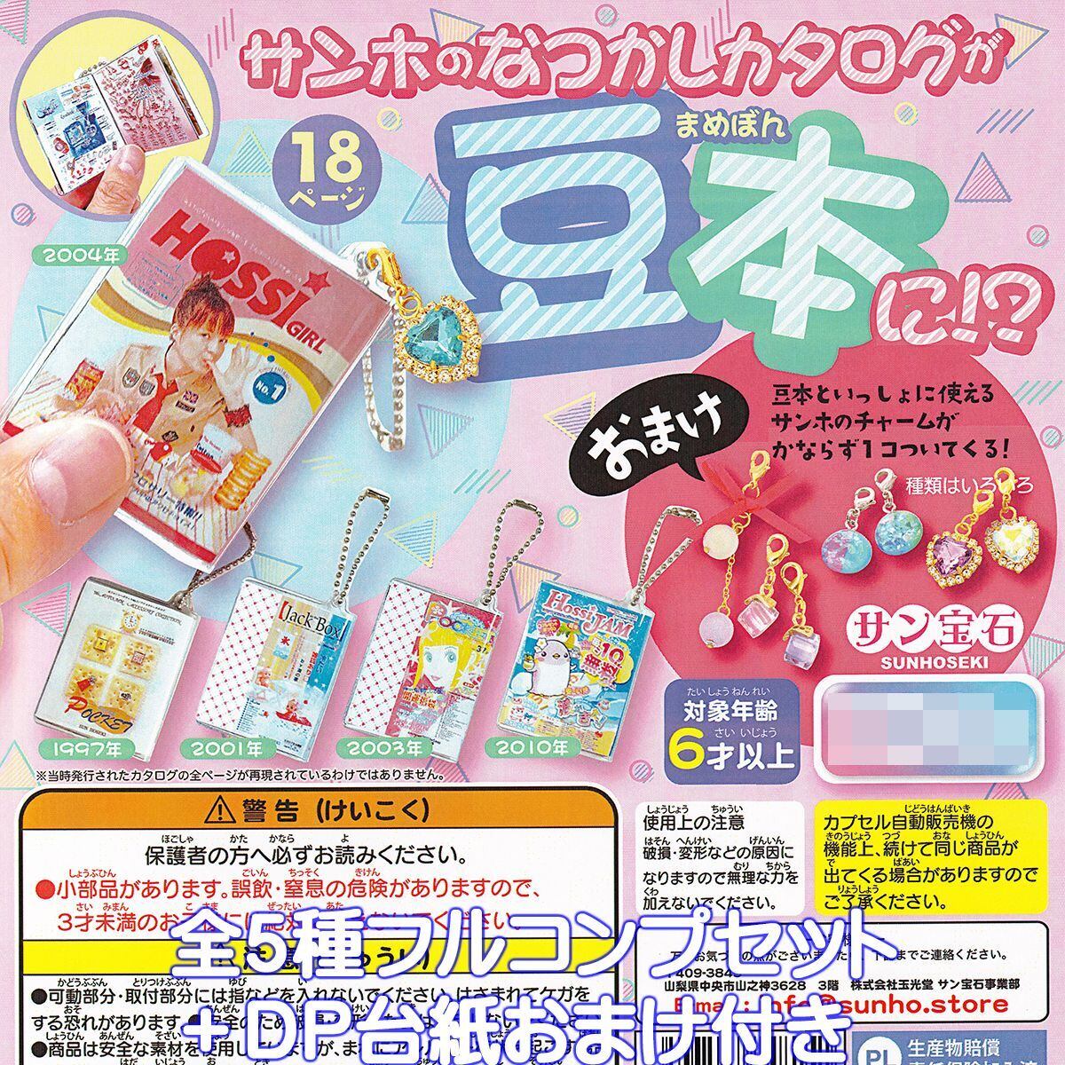 サンホのなつかしカタログが豆本に!? サン宝石 【全5種フルコンプセット+DP台紙おまけ付き】 まめぼん SUNHOSEKI ミニチュア グッズ 手のひらサイズ チャームの種類はランダムです ガチャガチャ カプセルトイ【即納 在庫品】【数量限定】【フルコンプリート】
