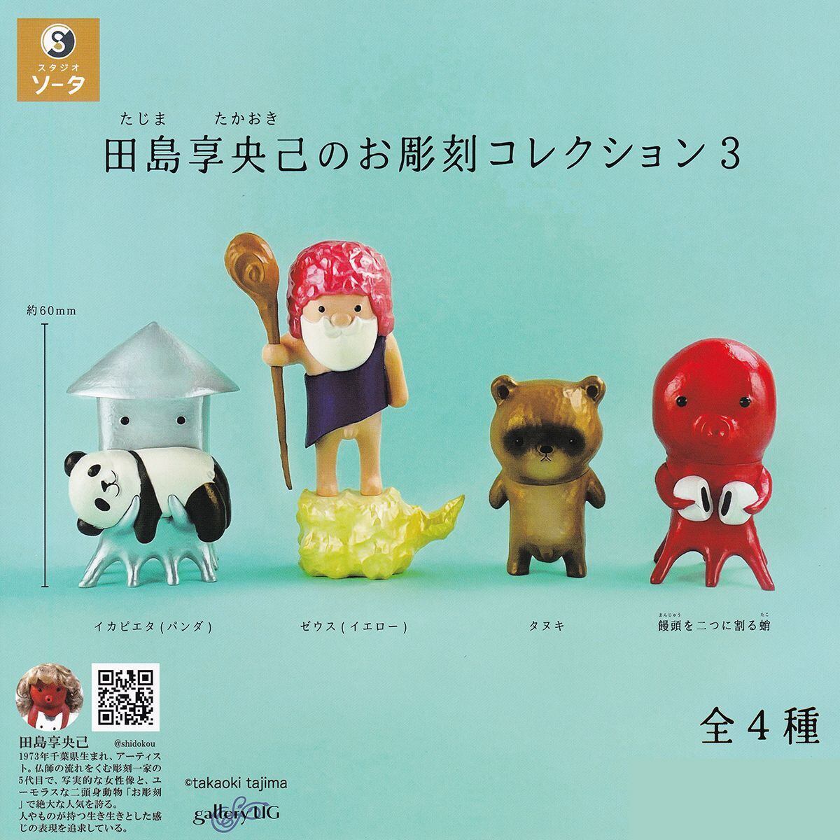 田島享央己のお彫刻コレクション3 SO-TA 【全4種フルコンプセット+DP台紙おまけ付き】 たじまたかおき キャラクター グッズ フィギュア 彫刻家 第3弾 動物 ゼウス ガチャガチャ カプセルトイ【即納 在庫品】【数量限定】【フルコンプリート】