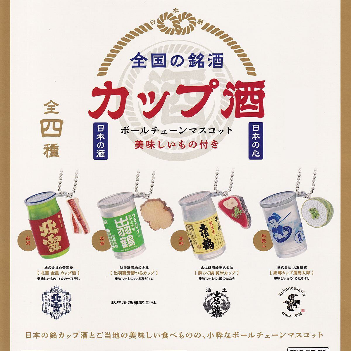 日本全国の有名なカップ酒と、その土地のご当地名物グルメが、ボールチェーン付きマスコットになって新登場です。