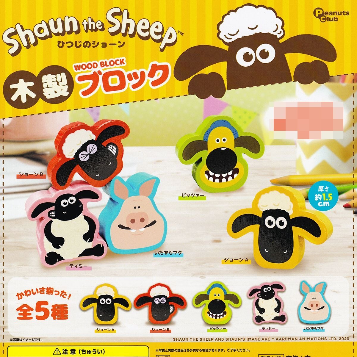 ひつじのショーン 木製ブロック ピーナッツ・クラブ 【全5種フルコンプセット+DP台紙おまけ付き】 Shaun the Sheep WOOD BLOCK キャラクター グッズ ピッツァー ティミー いたずらブタ 羊 動物 ガチャガチャ カプセルトイ【即納 在庫品】【数量限定】【フルコンプリート】
