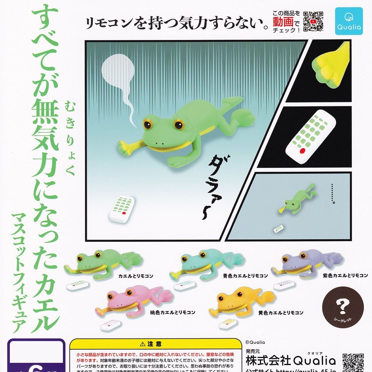 カエルとリモコン 【すべてが無気力になったカエルマスコットフィギュア Qualia 蛙 キャラクター グッズ フィギュア ガチャガチャ カプセルトイ】【即納 在庫品】【数量限定】【単品】