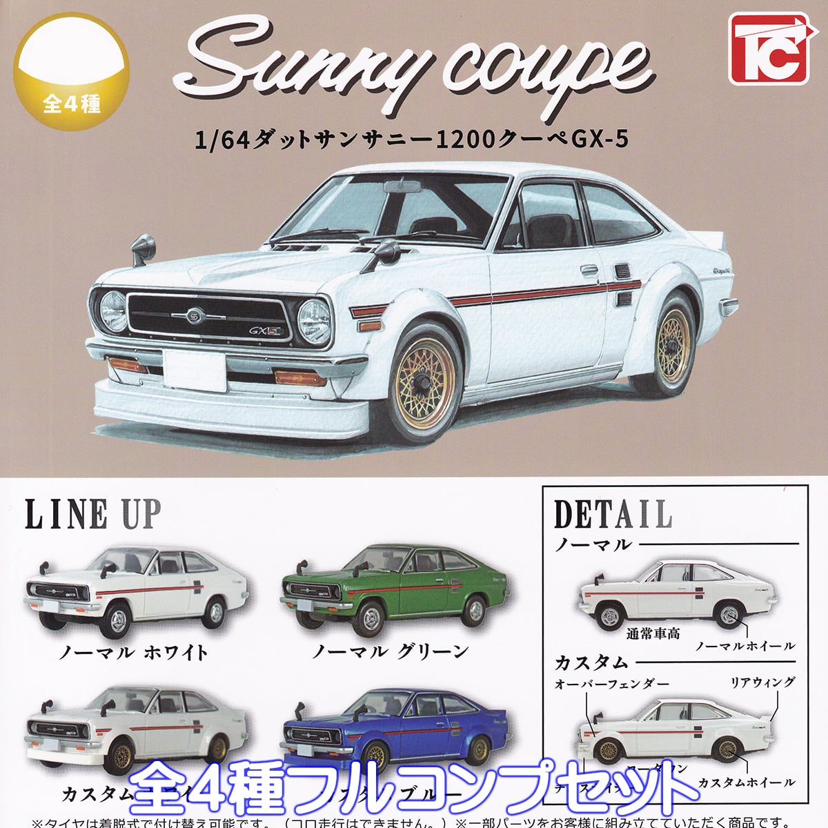 1/64 ダットサンサニー1200クーペGX-5 トイズキャビン 【全4種フルコンプセット】 ミニカー Sunny coupe ミニチュア グッズ フィギュア カスタム 日産 ガチャガチャ カプセルトイ【即納 在庫品】【数量限定】【フルコンプリート】