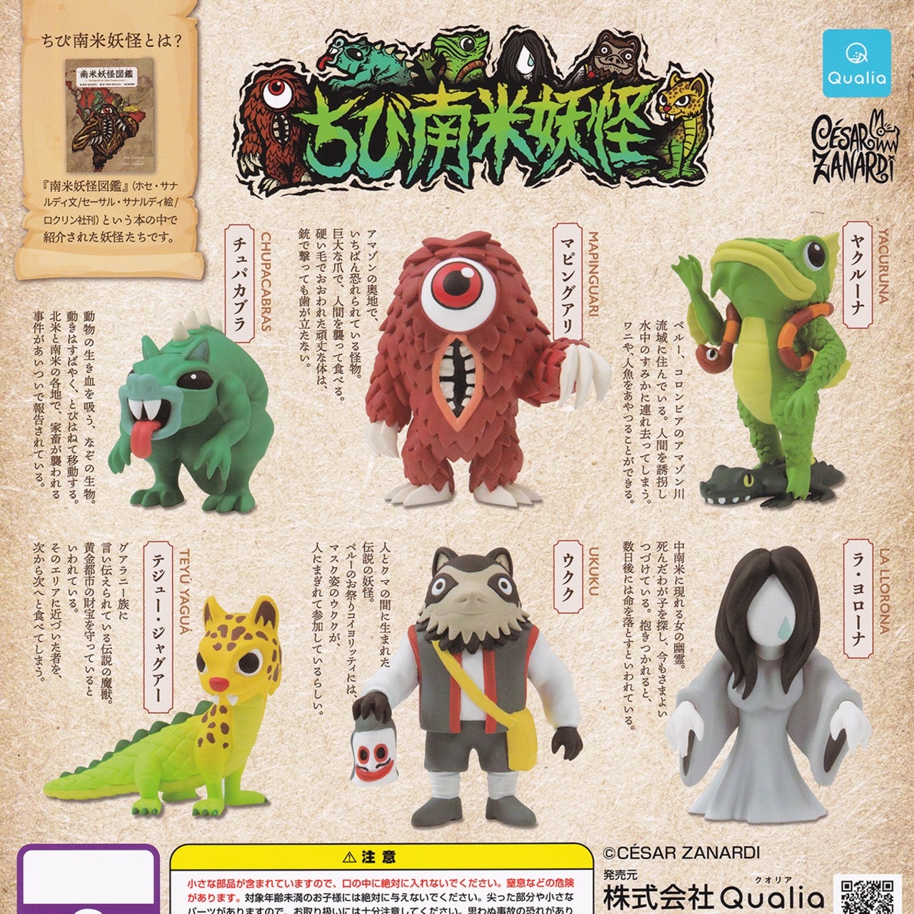 ちび南米妖怪 Qualia 【全6種フルコンプセット】 南米妖怪図鑑 CESAR ZANARDI キャラクター グッズ フィギュア クオリア ガチャガチャ カプセルトイ【即納 在庫品】【数量限定】【フルコンプリート】