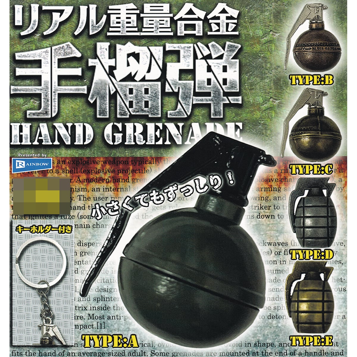 合金製で手に持った時の重量感や小さいながらもリアルな作り込みが特徴の小さな手榴弾キーホルダーが新登場です。
