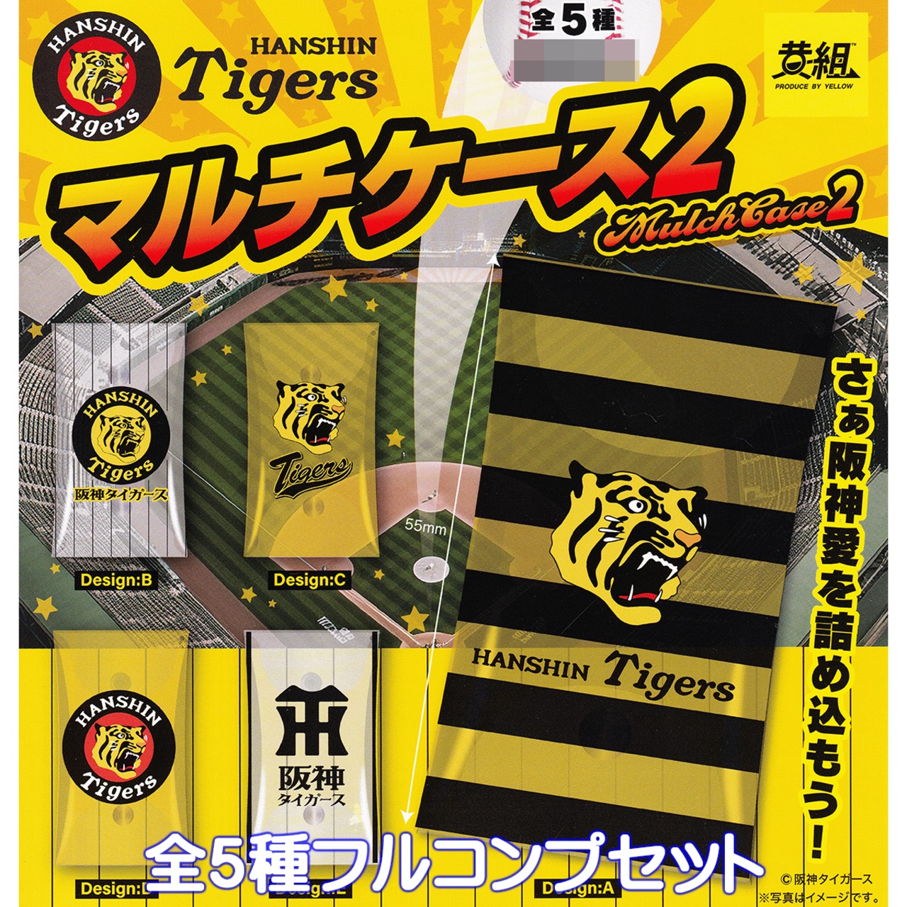 阪神タイガース マルチケース2 イエロー 【全5種フルコンプセット】 HANSHIN Tigers グッズ 小物入れ ガチャガチャ カプセルトイ【即納 在庫品】【数量限定】【フルコンプリート】