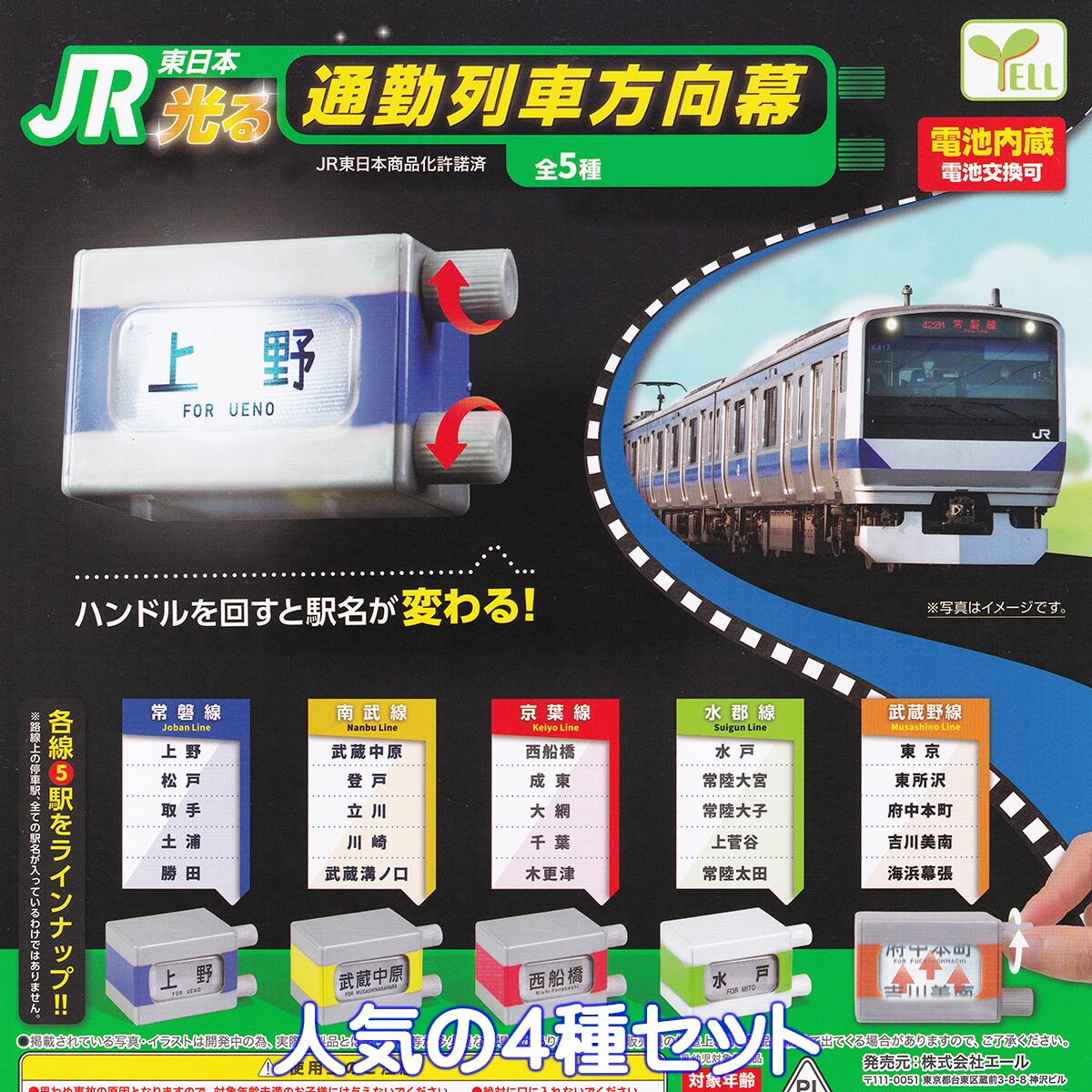 JR東日本 光る 通勤列車方向幕 エール 【人気の4種セット】 駅名 グッズ フィギュア 行き先表示 鉄道 模型 JR EAST GLOWING COMMUTER TRAIN ガチャガチャ カプセルトイ【即納 在庫品】【数量限定】
