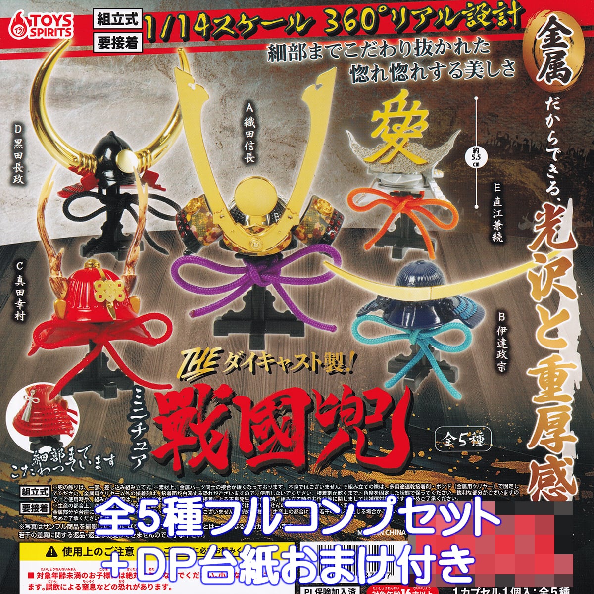 THEダイキャスト製! ミニチュア戦國兜 トイズスピリッツ 【全5種フルコンプセット+DP台紙おまけ付き】 1/14スケール グッズ フィギュア 戦国時代 歴史 ガチャガチャ カプセルトイ【即納 在庫品】【数量限定】【フルコンプリート】
