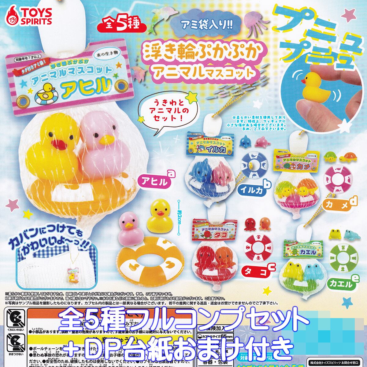 アミ袋入り!! 浮き輪ぷかぷかアニマルマスコット トイズスピリッツ 【全5種フルコンプセット+DP台紙おまけ付き】 動物 生き物 グッズ フィギュア ガチャガチャ カプセルトイ【即納 在庫品】【数量限定】【フルコンプリート】 | お宝市場BASE店 【フィギュア・ガチャガチャ・ガチャポン・食玩・プライズ・アニメ・グッズ・模型・ミニチュア】