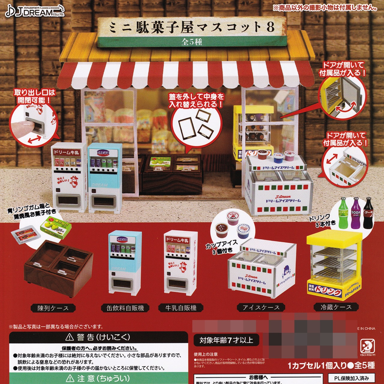 ミニ駄菓子屋マスコット8 J.ドリーム 【全5種フルコンプセット+DP台紙おまけ付き】 ミニチュア グッズ フィギュア ガチャガチャ カプセルトイ【即納 在庫品】【数量限定】【フルコンプリート】