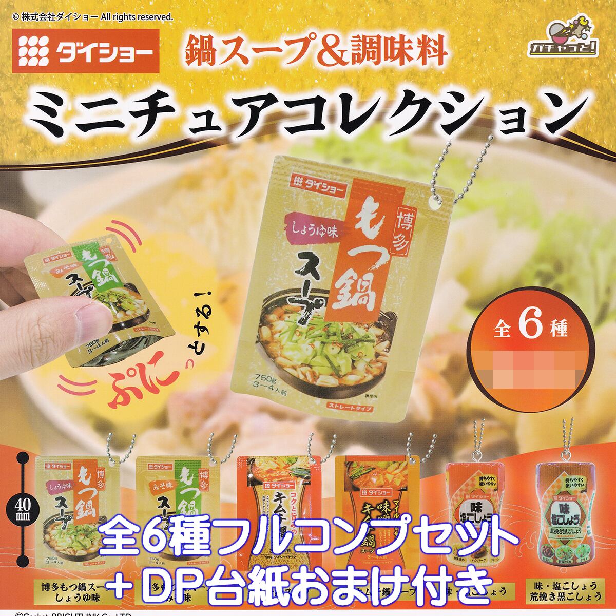 ダイショー 鍋スープ&調味料 ミニチュアコレクション ブライトリンク 【全6種フルコンプセット+DP台紙おまけ付き】 パッケージ グッズ フィギュア DAISHO HOT POT SOUP SEASONING ガチャガチャ カプセルトイ【即納 在庫品】【数量限定】【フルコンプリート】 | お宝市場BASE店 【フィギュア・ガチャガチャ・ガチャポン・食玩・プライズ・アニメ・グッズ・模型・ミニチュア】
